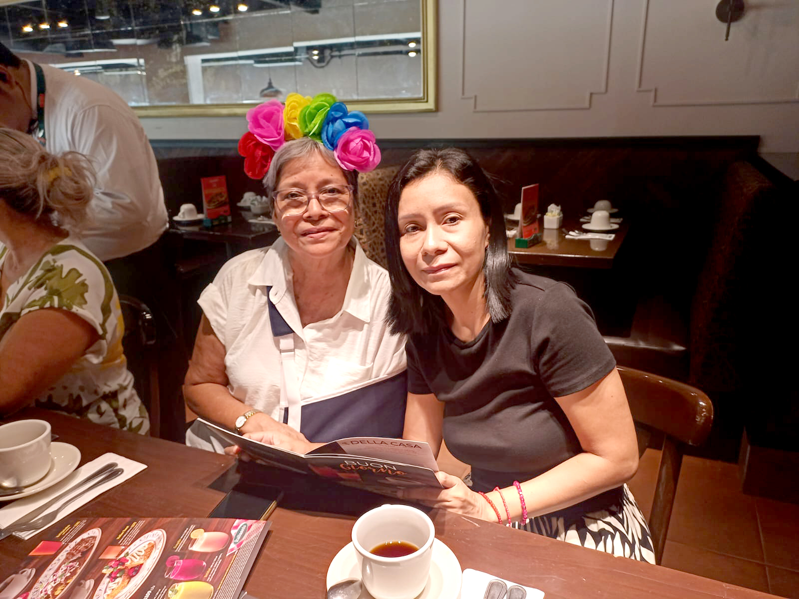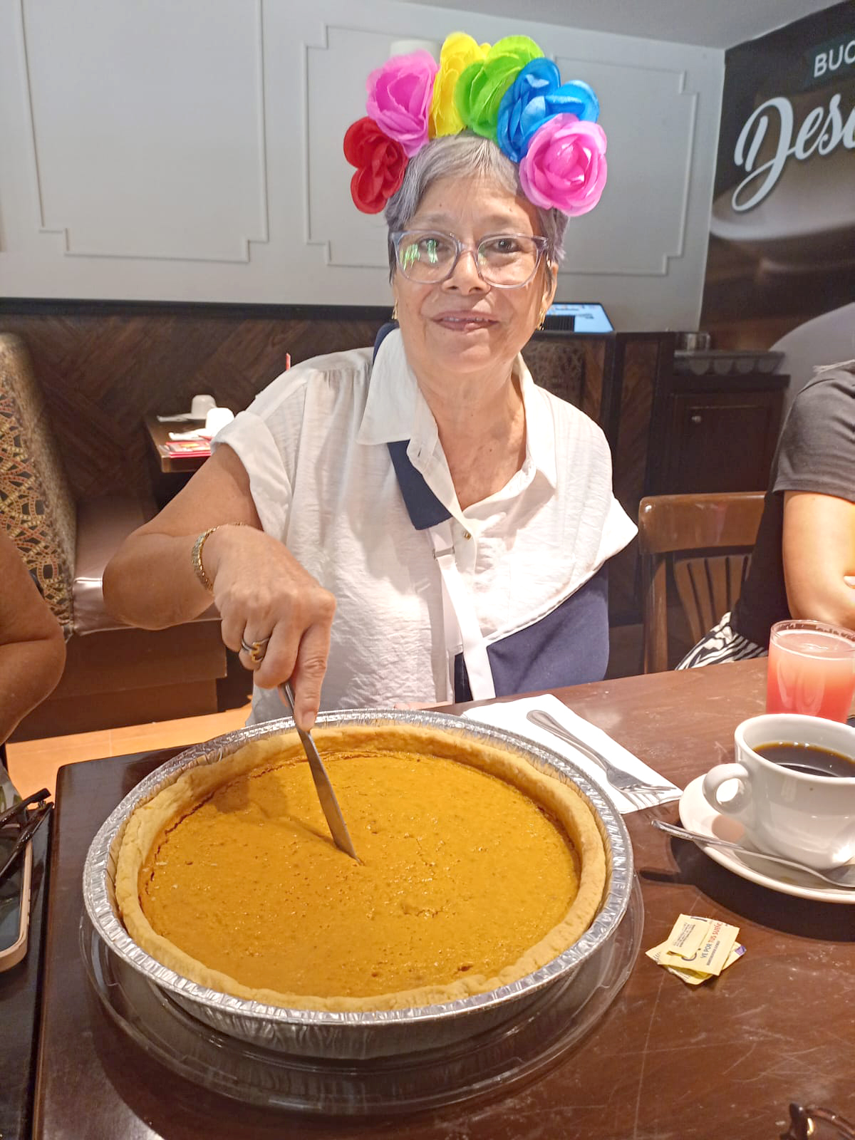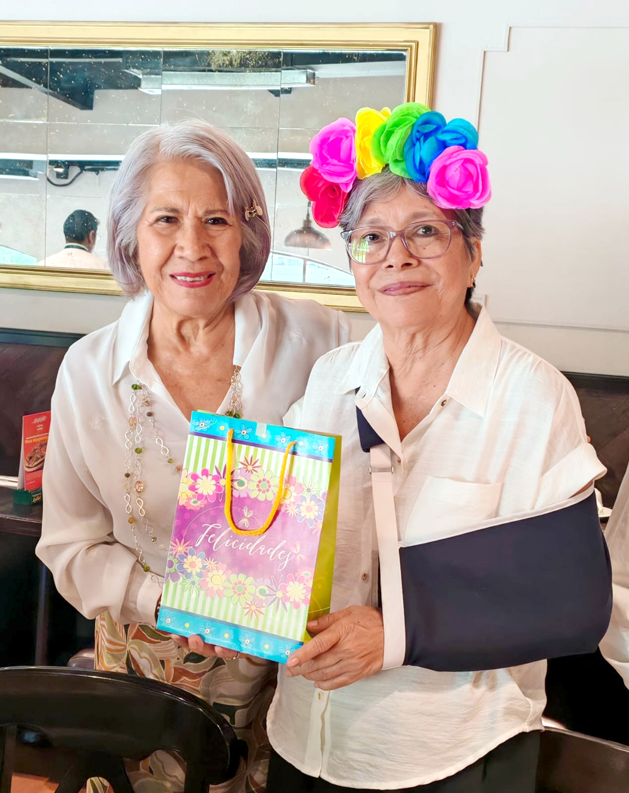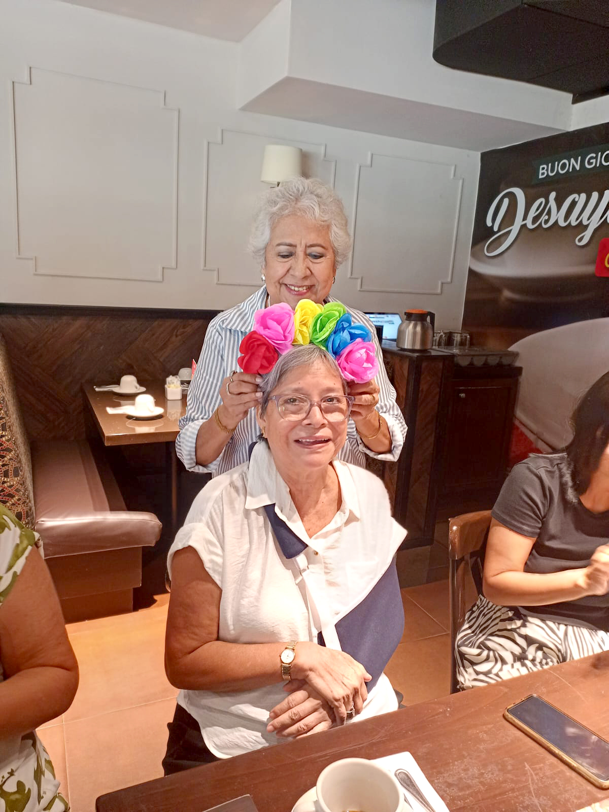Otro momento emotivo fue cuando la Dra Bety Peralta le colocó a la cumpleañera su diadema floral para ser distinguida como la protagonista del evento amistoso. Luego la líder del grupo Gloria Sierra brindó unas palabras de aliento y cariño para Carmen y Rosana, haciendo entrega en ese momento de un obsequio grupal y de un delicioso pay de calabaza que se compartió para acompañar el café.