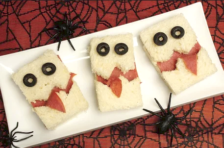 En cuanto al pan, uno de los más apropiados para hacer sandwiches de Halloween es el pan de molde, ya sea de pan blanco o de pan integral. Esto es así porque es un pan muy fácil de manejar, algo que resulta ideal para hacer diferentes formas y cortes, puede funcionar a la hora de caracterizarlo y conseguir unos bocadillos terroríficos y tenebrosos.