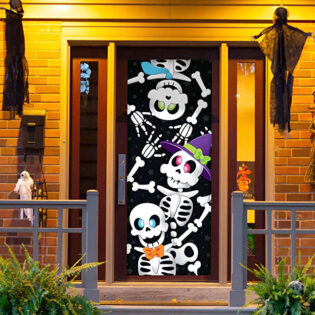 Se forra la puerta con cartoncillo negro y se realizan recortes de huesos y calaveras de cartulinas blancas, que se colocan de manera estratégica. Todos los huesitos y calacas se pintan con pintura de agua o plumones para darle forma a las caritas de las calaveras y contornos de los huesitos.