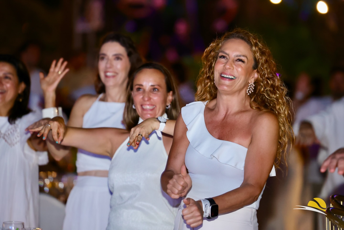 Así se vivió una de las noches más icónicas del Abierto Mexicano de tenis en Acapulco: la White Party, plena de buena vibra, música tecno, grandes encuentros, con un total look blanco por parte de los asistentes.,