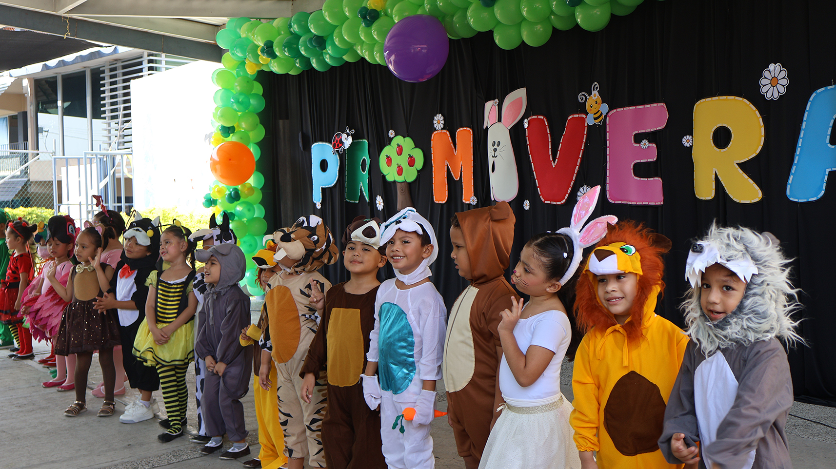 Más tarde, a las 9:30, el turno fue para kínder, que transformó el espacio en un colorido zoológico con disfraces de leones, elefantes, jirafas, abejas y aves.