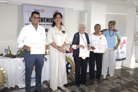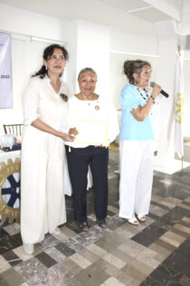 Por su parte la presidente saliente de Rotario Acapulco, Guadalupe Medina, entregó reconocimientos a: Rosa Maria Santiago Paloalto, por su entrega y trabajo a Rotary; Marcia Fuentes y Aponte, por ser la primer mujer Rotaria en Acapulco y por su entrega incondicional en todos estos años como Rotary; y Víctor Jorrín Arizmendi, por su trabajo de preparación a los jóvenes que se van de intercambio a otros países.