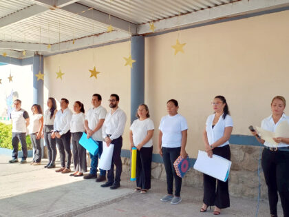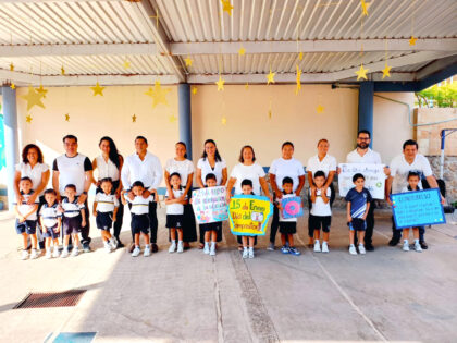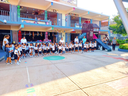 De manera muy participativa y emotiva, padres de familia de la Sección Preescolar del Colegio Mac Gregor Campus Ejido, llevaron a cabo el primer homenaje de este 2025, en el que rindieron honores al lábaro patrio, así como promovieron valores y mencionaron las efemérides del mes de enero, tanto en español como en inglés.