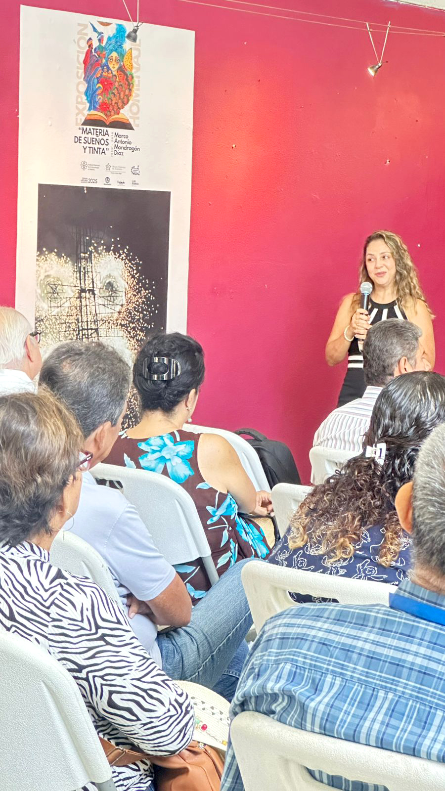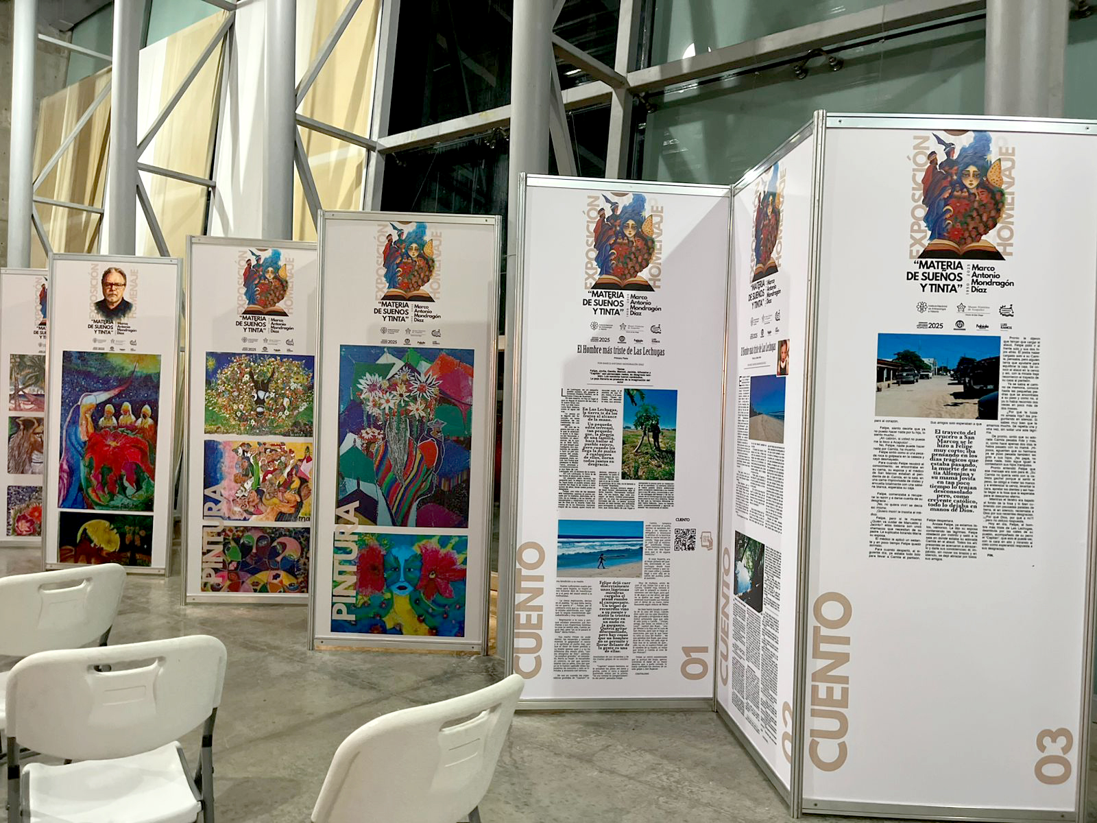 La exposición, que se inauguró el pasado 19 de agosto, reúne fragmentos de poesía, cuentos (como el publicado en la revista Presencia) y piezas de pintura de Mondragón Díaz, seleccionadas tras un riguroso proceso de curatoría en el que participaron su hijo el también arquitecto Marco Mondragón y el arquitecto Luis Ramos, mentor creativo del proyecto. Durante la ceremonia, Ramos recordó que la idea de la exposición surgió a partir de una propuesta para crear una página en redes sociales para difundir la obra de Mondragón Díaz.