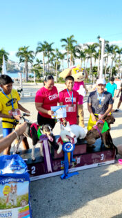 Cada uno de los participantes recibió su medalla de participación, playera y bebedero de agua para los caninos participantes, y a los ganadores de cada categoría 1ero, 2do y 3er lugar recibió un premio en efectivo además de premios en especie y moñas de premiación.