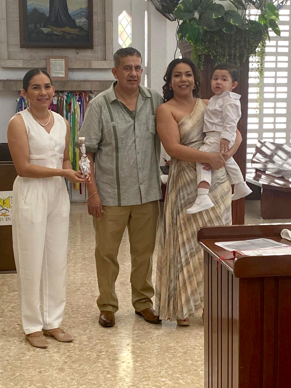 El pasado 17 de enero, el pequeño Omar Román Rebolledo recibió el sacramento del bautismo en una emotiva ceremonia religiosa celebrada en la Iglesia de Costa Azul, acompañado de sus padres, el Dr. José Omar Román Iturbide y Lic. Dalila Rebolledo Sotelo, así como de su madrina, Lic. Elizabeth Ibarra Ortega.