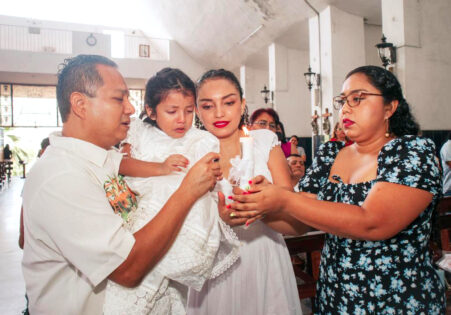 Para esta encomienda, los papás de Evelyn Ariet pidieron a Melissa Zavaleta, fungiera como Madrina de Bautizo de la pequeña, quien juró ante Dios ser la guía en el camino espiritual de Evelyn Ariet.