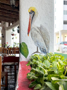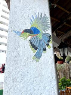 Como parte de su restauración ante los daños que le ocasionó el huracán Otis, el restaurante El Jaguar le solicitó a la artista plástica Ana Barreto le diera un toque especial para renovar su decoración pictórica en sus paredes y muros, cuidando su identidad que lo ha caracterizado desde sus inicios.