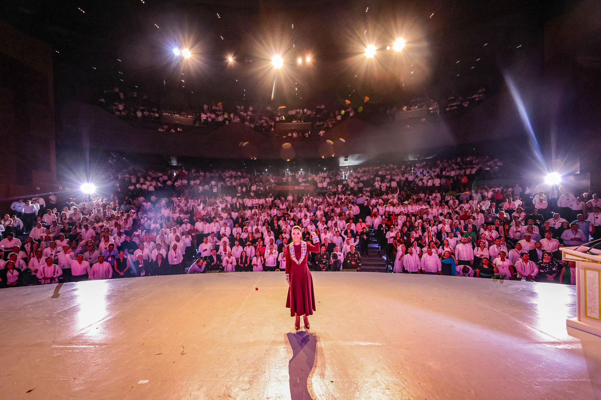Con música de viento, danzas tradicionales y el calor guerrerense, la gobernadora cumplió con este acto de rendición de cuentas que fortalece la democracia y refrenda el compromiso con las y los guerrerenses, con la presencia del representante de la presidenta de la República, Claudia Sheinbaum Pardo, Sebastián Ramírez Mendoza director general de FONATUR, así como mandos militares, navales y los titulares de los poderes legislativo y judicial, además de alcaldesas y alcaldes de la entidad.