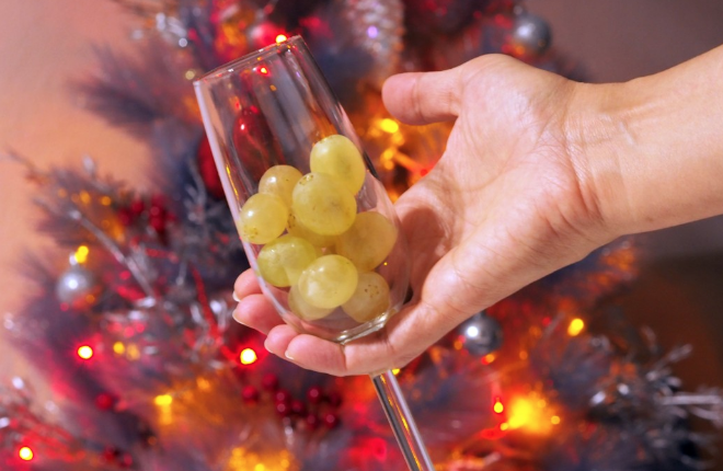 – Se come 12 uvas a medianoche, una por cada campanada del reloj, para atraer la buena suerte para cada mes del año.
