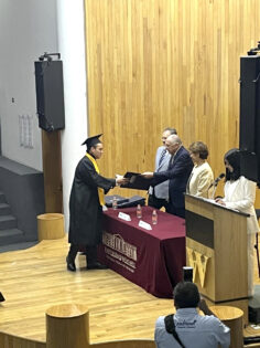 El relevante acto académico de Graduación de la Generación 2024 de la Facultad de Medicina, se llevó a cabo en el auditorio principal de la Universidad Westhiil, donde se dieron cita autoridades educativas, familiares, docentes e invitados especiales de los integrantes de la nueva generación de Médicos Cirujanos, entre ellos, Jonathan Fermín Alvarado Salmerón, quien con ello conquistaba uno de sus principales sueños: ser Médico Cirujano. Desde el cielo, sus abuelos paternos Gerald (Gerardo Alvarado Balanzar) y Yuya (Obdulia Arroyo Jacinto), y su abuelo materno Nemesio Salmerón Tacuba, además, -a la distancia- su abuela Roselia Mendoza Bernal; seguramente estarán contentos y orgullosos disfrutando que alcanzó una de sus importantes metas de vida.