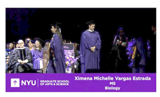 Habiendo presentado la tesis y concluido cabalmente el programa de maestría, Ximena Vargas Estrada fue acompañada por su familia en las dos ceremonias que la Universidad de Nueva York llevó a cabo: la graduación general que se llevó a cabo en el Estadio de los Yankees de Nueva York y en la ceremonia de la Facultad de Artes y Ciencias celebrada en el Beacon Theater donde recibió los honores correspondientes.
