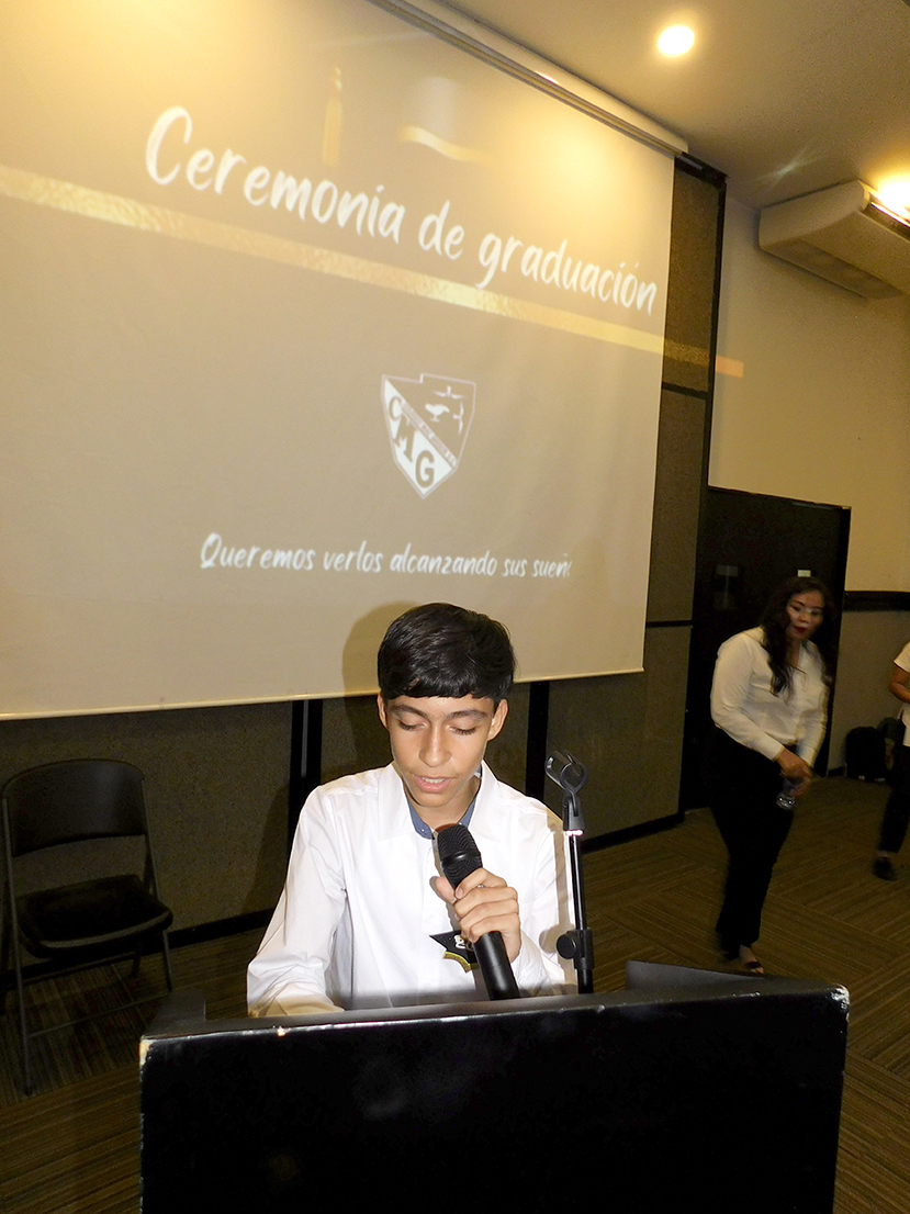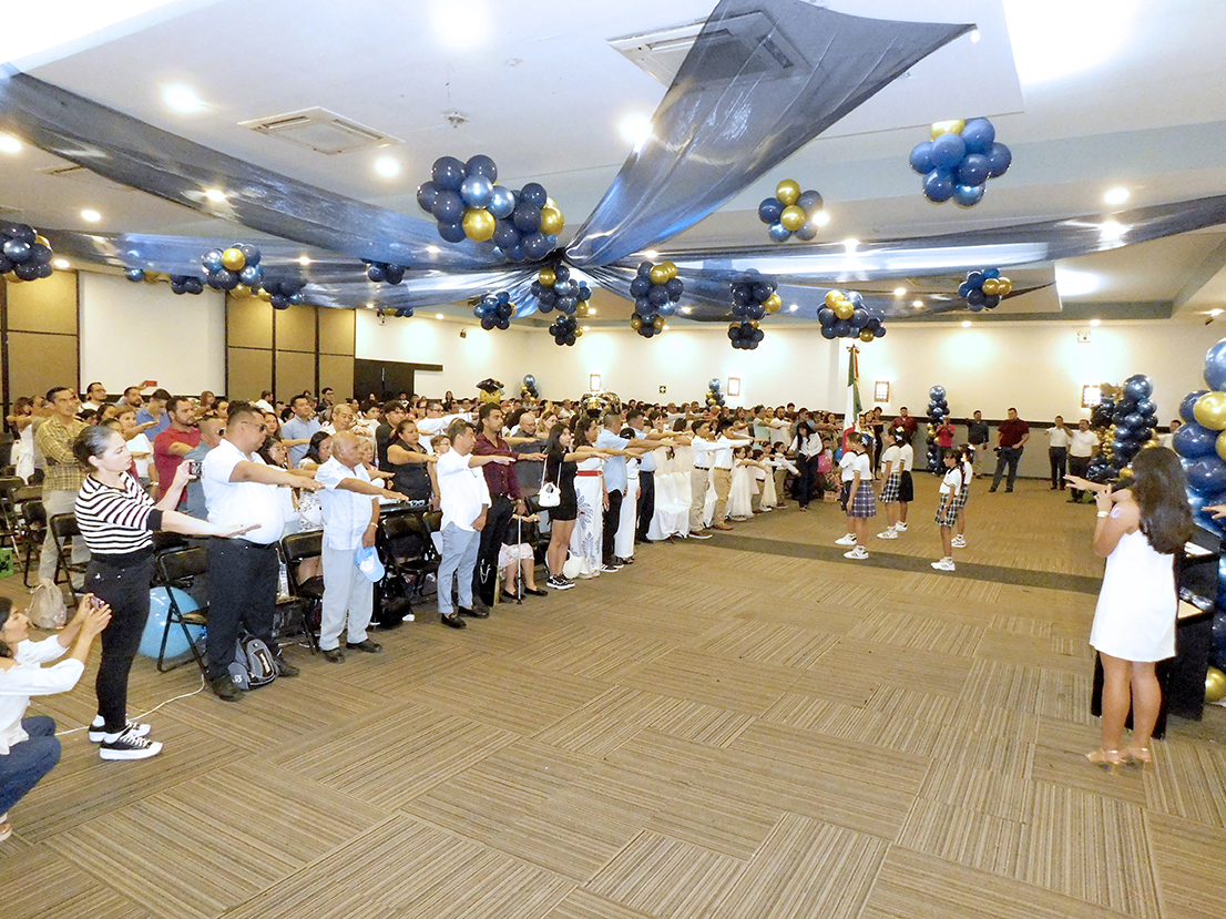 La mesa del presidium estuvo integrada por Miss Ariana Bernal, directora de sección Secundaria; Miss Selene Sotelo, directora de sección Primaria; Miss Lisette Jiménez López, directora de Preescolar Plantel Ejido; Miss Teresa Alarcón Solís, jefa de Enseñanza Departamento de Inglés y los directivos del Plantel Costa Azul: Miss Adriana Sánchez y profesor Fabián Eduardo Vázquez