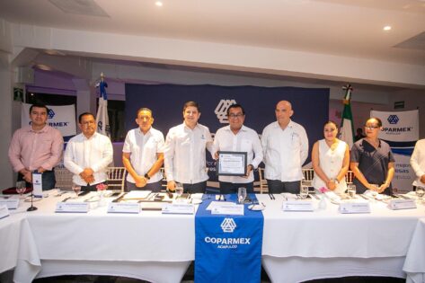 La Confederación Patronal de la República Mexicana (COPARMEX) Acapulco, que preside Daniel García Aguirre, celebró su sesión mensual con una conferencia del secretario de Turismo de Guerrero, Simón Quiñones, quien destacó los logros obtenidos durante la pasada edición del Tianguis Turístico. En su intervención, Quiñones informó que Guerrero ha adoptado una política de turismo integral y ahora se promociona como “El Hogar del Sol”.
