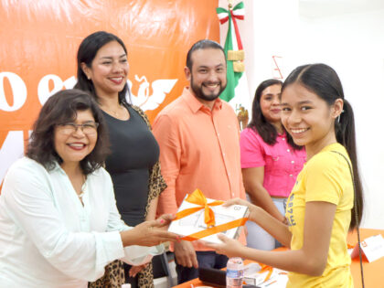 La entrega del acto noble de mitigar el impacto del desastre natural en la educación de los jóvenes, proporcionándoles herramientas tecnológicas esenciales para su aprendizaje y desarrollo, se llevó a cabo en el auditorio de Movimiento Ciudadano donde los estudiantes recibieron estos valiosos recursos.