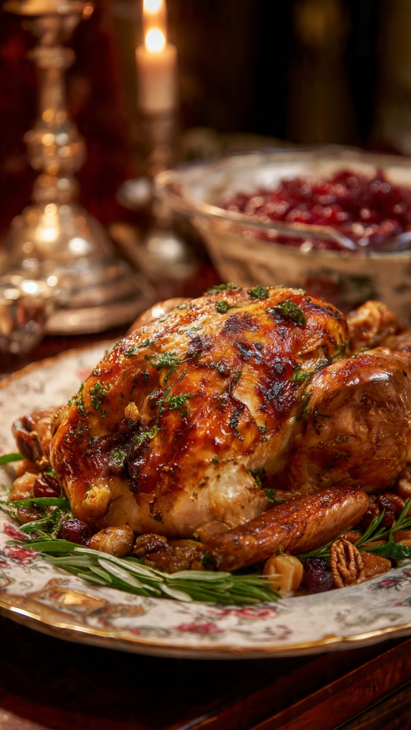 Plato Fuerte: Pavo Relleno de Frutas Secas y Nueces con Salsa de Arándanos