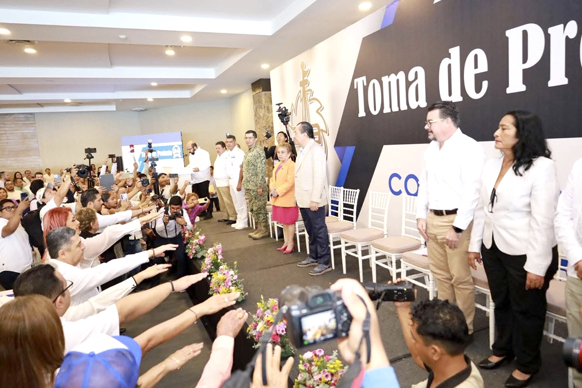 Con Honores a la Bandera y el Himno Nacional Mexicano inició el evento, continuó con la autorpresentación de los socios del Grupo ACA, siguió con el mensaje de la presidenta saliente Margarita Nájera, para dar paso al acto solmne al tomarles la protesta al nuevo Consejo Directivo el representante de la gobernadora Evelyn Salgado, el Oficial Mayor de la SeFina estatal Ricardo Salinas.