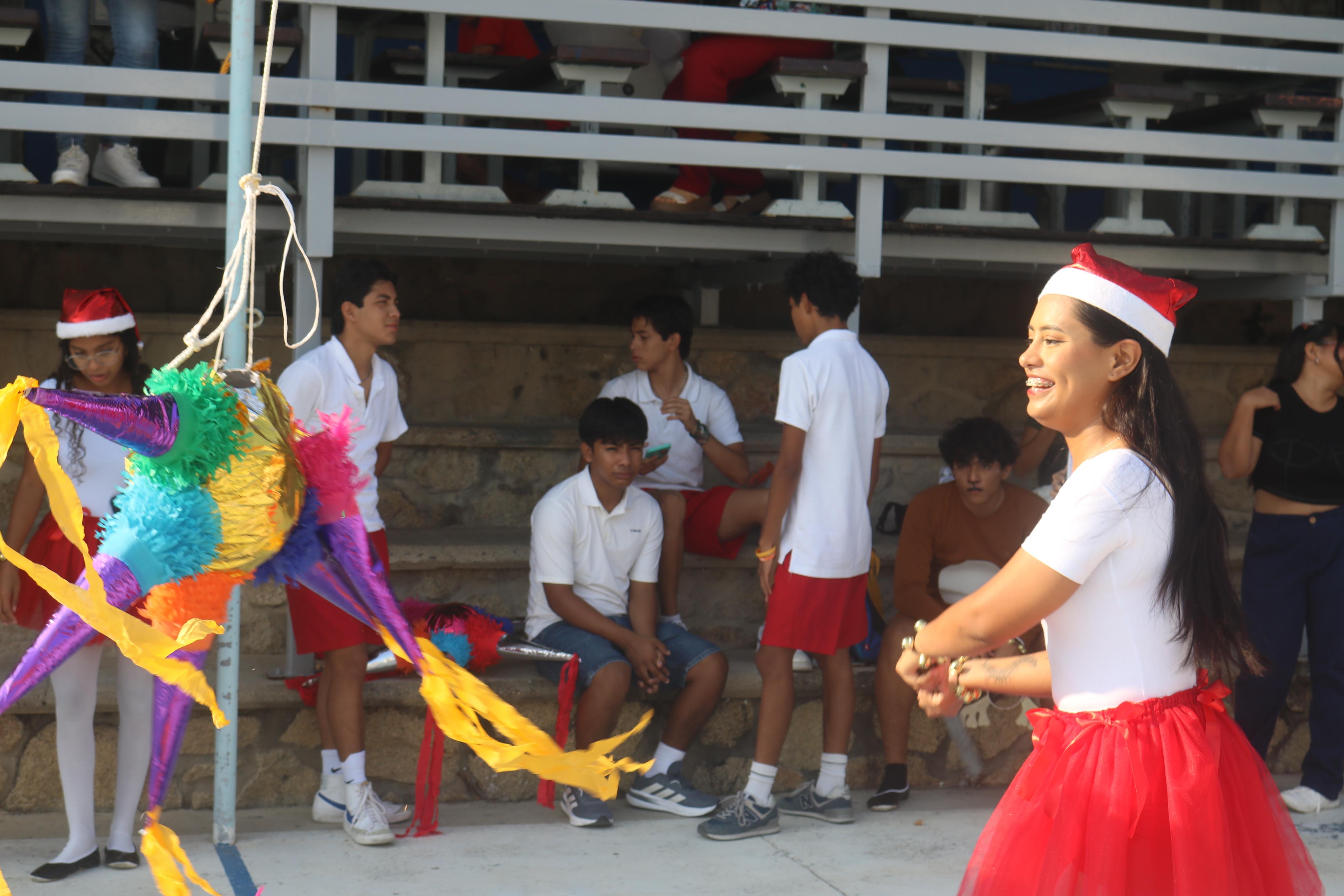 Con alegría por los cielos, pastel, piñatas y bailes, el Instituto Jaime Torres Bodet celebró su posada navideña en la institución. En torno a las 9 de la mañana del pasado jueves 18 de diciembre, en la cancha principal, estudiantes, maestros, directivos, familia y amigos se reunieron para apreciar las interpretaciones de los alumnos, iniciando con la pastorela “Nacimiento de Jesús”, a cargo de la licenciatura de primaria 3er año, y después de secuestrar a los despistados pastores, los demonios cumbieros se hincaron ante el Niño Dios para celebrar su nacimiento.