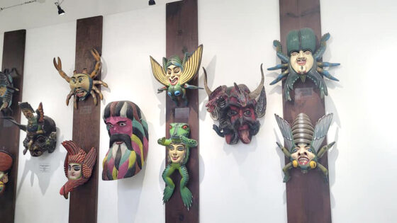 La mayoría de las máscaras están hechas de madera y decoradas con espejos, colmillos de jabalí y de perro. Además, disfrutaron de las máscaras de los Diablos de la Costa Chica, hechas de cartón, crin de caballo, piel y cuerno de animal.